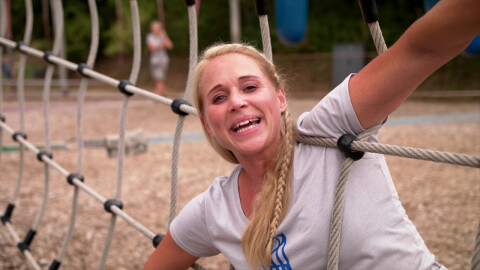 Bitte auf dem Slackline-Parcours nur mit geeignetem Schuhwerk oder auch barfuß balancieren.